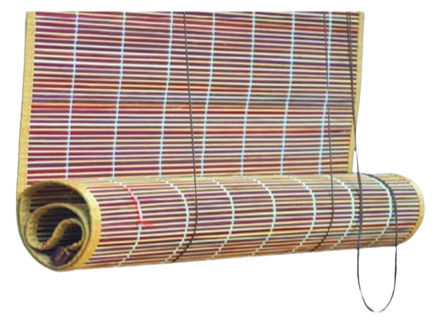 - Design: Tightly woven bamboo slats with string/cord roll-up mechanism